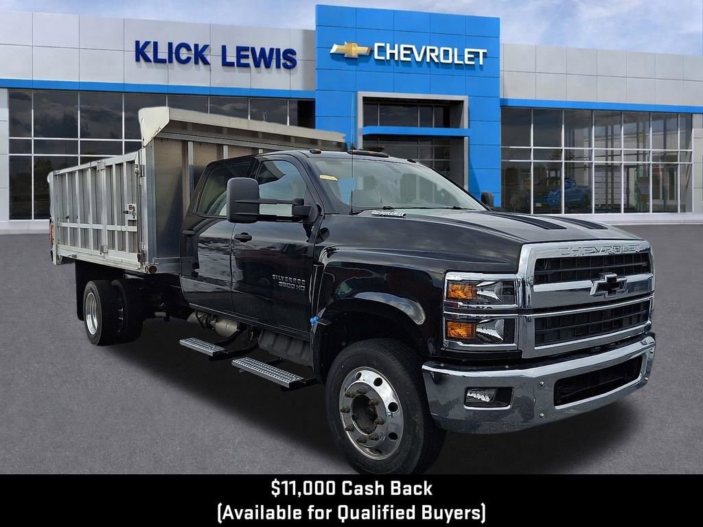 #mediumduty 6-Speed Automatic, Dark Ash Seats With Jet Black Interior Accents Vinyl, 10-Way Power Driver's Seat Adjuster, 30,000 lbs. GCWR (13,607 kg), 4.10 Rear Axle Ratio, 4.2 Diagonal Color Display Driver Info Center, 40/20/40 Front 3-Passenger Split Bench Seat, 40/20/40 Front 3-Passenger Split Bench Seat w/Jet Blk, ABS brakes, Air Conditioning, Aluminum Assist Steps, Chrome Front Bumper, Chrome Grille, Delay-off headlights, Driver door bin, Dual front impact airbags, Dual front side impact airbags, Dual rear wheels, Electronic Stability Control, Exterior Parking Camera Rear, Front Center Armrest w/Storage, Front Halogen Fog Lamps, Front reading lights, Front Stabilizer Bar, Frontal Passenger-Side Airbag Deactivation Switch, Fully automatic headlights, Leather Wrapped Steering Wheel, Limited-Slip Axle, Manual Regeneration Diesel Particulate Filter DPF, Occupant sensing airbag, Overhead airbag, Overhead console, Passenger cancellable airbag, Passenger door bin, Power steering, Power Take-Off Engine Control Provisions, Preferred Equipment Group 1WT, Premium audio system: Chevrolet MyLink, Radio: AM/FM Stereo w/8 Diagonal Color Touch Screen, Rear Shock Absorbers, Remote Keyless Entry, Single-Slot CD/MP3 Player, Single-Zone Air Conditioning, Speed control, Steering Wheel Audio Controls, Tachometer, Tilt steering wheel, Top Post Threaded Battery Jump Start Stud, Traction control, Trip computer, Upfitter Electrical Provisions In Rear Of Frame, Variably intermittent wipers, Voltmeter, Wheels: 19.5 x 6.75 Black Painted Hub Piloted Steel w/8-Holes, Wheels: 19.5 x 6.75 Hub Piloted 6-Alum w/8-Holes, 6-Speed Automatic, Dark Ash Seats With Jet Black Interior Accents Vinyl.