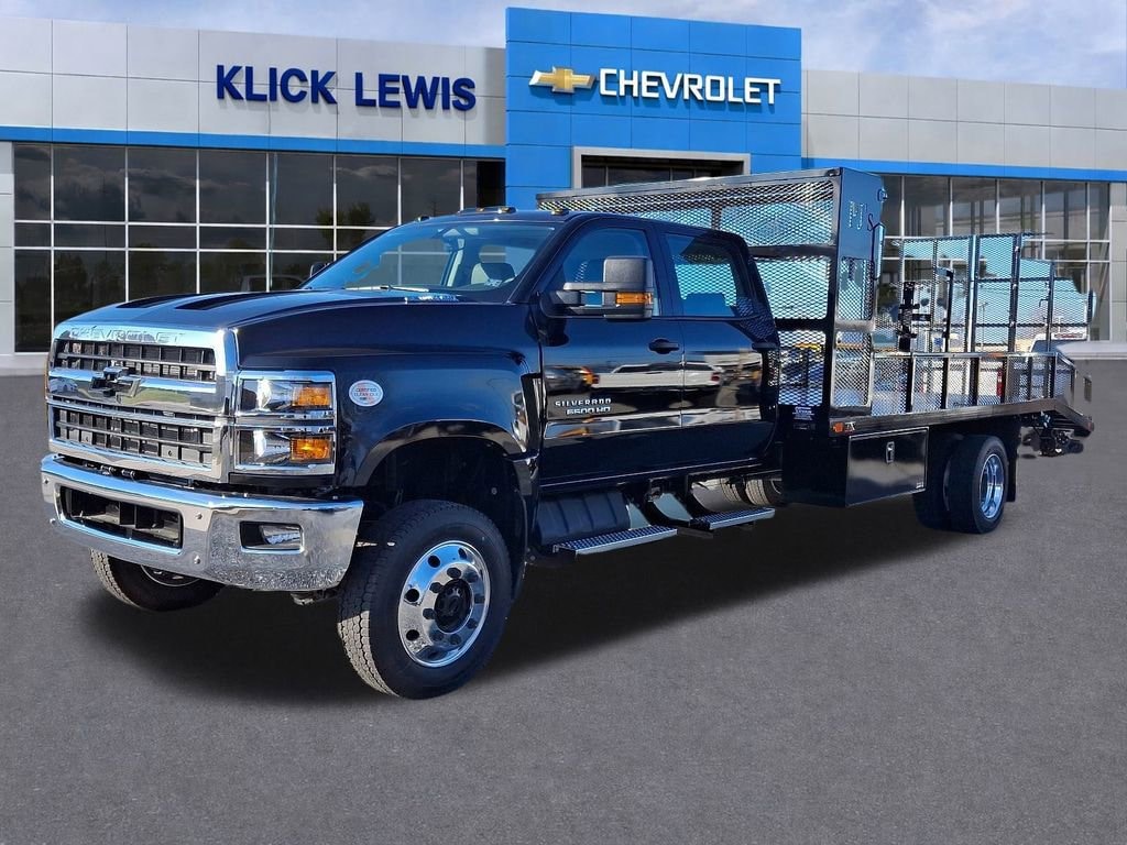 26,000 lbs. GCWR (11,793 kg), 4.30 Rear Axle Ratio, 40/20/40 Front 3-Passenger Split-Bench Seat, 40/20/40 Front 3-Passenger Split-Bench Seat w/Dk Ash, 75 Axle To End Of Frame, ABS brakes, Air Conditioning, Aluminum Assist Steps, Chrome Front Bumper, Chrome Grille, Delay-off headlights, Driver door bin, Dual front impact airbags, Dual front side impact airbags, Dual rear wheels, Dual-Note Horn, Electronic Stability Control, Exterior Parking Camera Rear, Front Center Armrest w/Storage, Front Halogen Fog Lamps, Front reading lights, Front Stabilizer Bar, Frontal Passenger-Side Airbag Deactivation Switch, Fully automatic headlights, Limited-Slip Axle, Manual Regeneration Diesel Particulate Filter DPF, Occupant sensing airbag, Overhead airbag, Overhead console, Passenger cancellable airbag, Passenger door bin, Power steering, Power Take-Off Engine Control Provisions, Preferred Equipment Group 1WT, Premium audio system: Chevrolet MyLink, Radio: AM/FM Stereo w/4.2 Diagonal Color Display, Rear Shock Absorbers, Remote Keyless Entry, Single-Zone Air Conditioning, Speed control, Tachometer, Tilt steering wheel, Traction control, Trip computer, Variably intermittent wipers, Voltmeter, Wheels: 19.5 x 6.75 Black Painted Hub Piloted Steel w/8-Holes, Wheels: 19.5 x 6.75 Hub Piloted 4-Alum w/8-Holes.