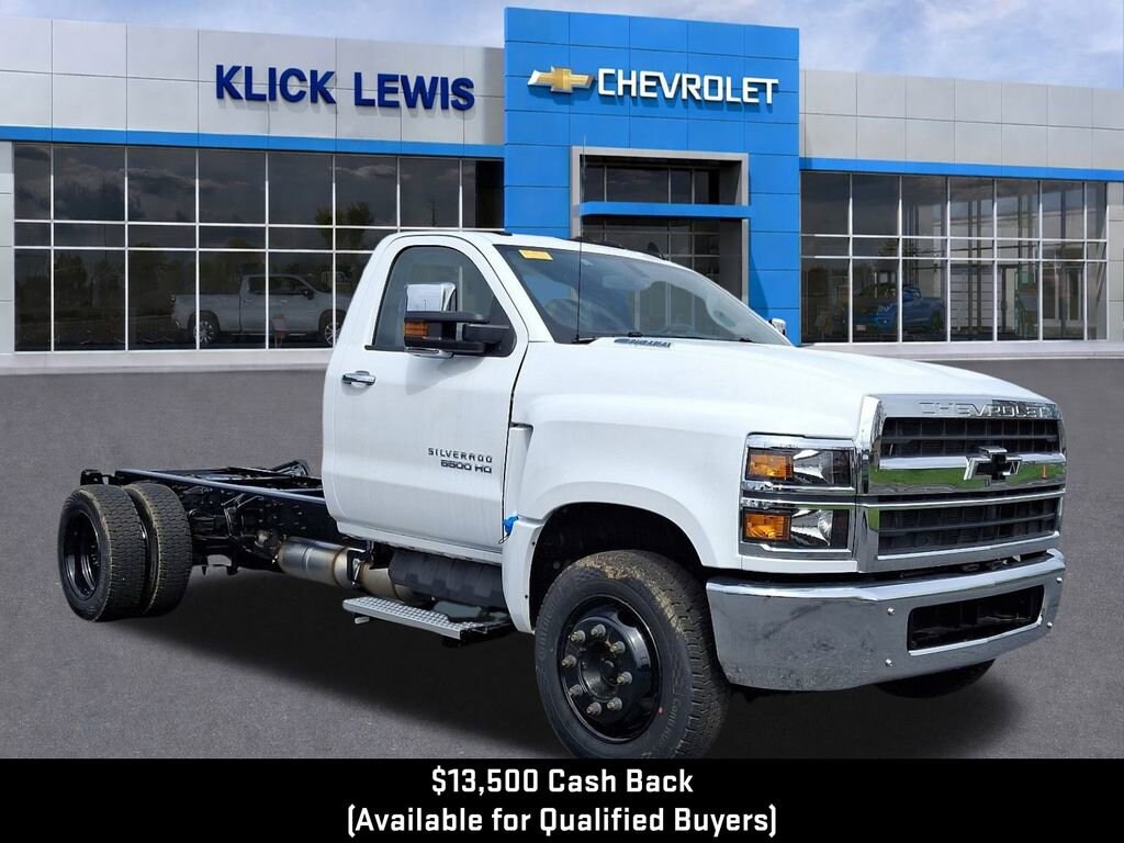 #mediumduty 26,000 lbs. GCWR (11,793 kg), 4.10 Rear Axle Ratio, 40/20/40 Front 3-Passenger Split Bench Seat, 40/20/40 Front 3-Passenger Split Bench Seat w/Jet Blk, ABS brakes, Air Conditioning, Aluminum Assist Steps, Chrome Front Bumper, Chrome Grille, Chrome Mirror Caps, Chrome Outside Door Handles, Delay-off headlights, Driver & Front Passenger Visors, Driver door bin, Dual front impact airbags, Dual front side impact airbags, Dual rear wheels, Electronic Stability Control, Exterior Parking Camera Rear, Front Center Armrest w/Storage, Front reading lights, Front Stabilizer Bar, Frontal Passenger-Side Airbag Deactivation Switch, Fully automatic headlights, Manual Regeneration Diesel Particulate Filter DPF, Occupant sensing airbag, Overhead airbag, Overhead console, Passenger cancellable airbag, Passenger door bin, Power steering, Power Take-Off Engine Control Provisions, Preferred Equipment Group 1LT, Premium audio system: Chevrolet MyLink, Radio: AM/FM Stereo w/8 Diagonal Color Touch Screen, Rear Shock Absorbers, Single-Zone Air Conditioning, Speed control, Tachometer, Tilt steering wheel, Top Post Threaded Battery Jump Start Stud, Traction control, Trip computer, Upfitter Electrical Provisions In Rear Of Frame, Variably intermittent wipers, Vocational Specific Heavy Suspension Package, Voltmeter, Wheels: 19.5 x 6.75 Black Painted Hub Piloted Steel w/8-Holes.
