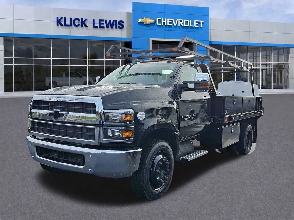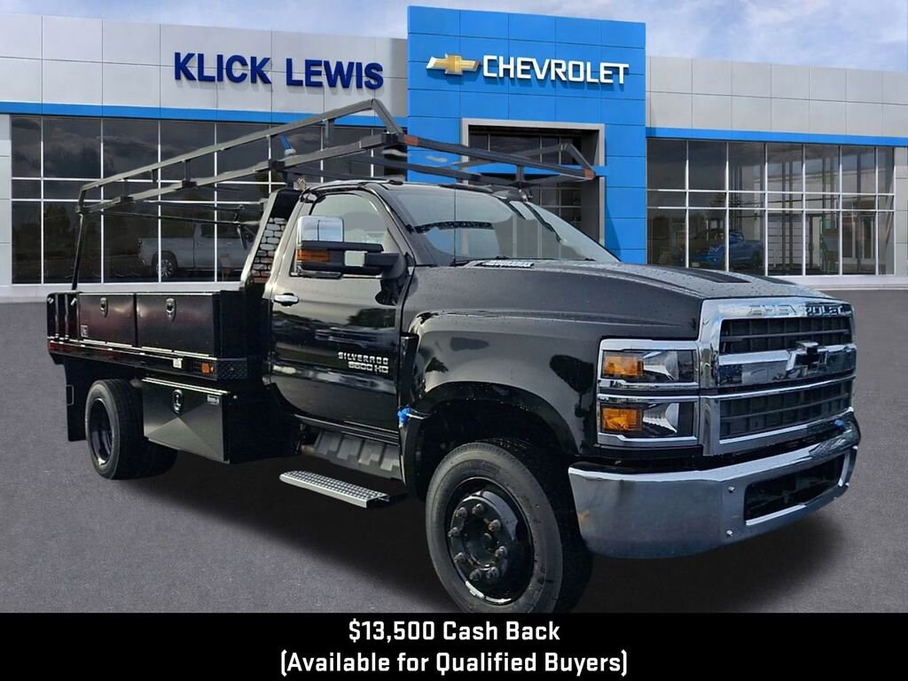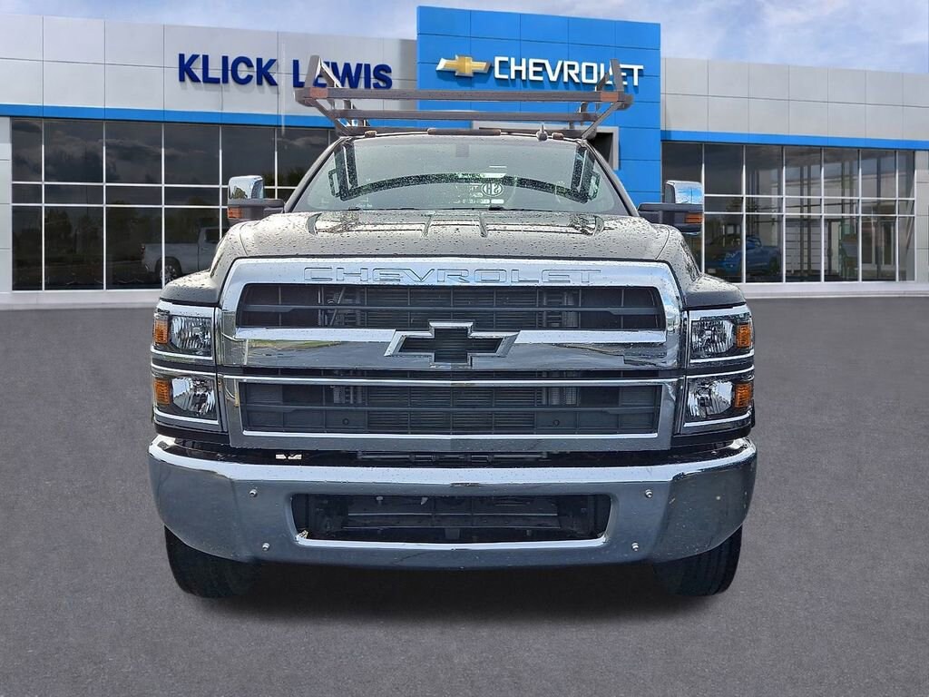 10-Way Power Driver's Seat Adjuster, 34,000 lbs. GCWR (15,422 kg), 40/20/40 Front 3-Passenger Split Bench Seat, ABS brakes, Air Conditioning, Aluminum Assist Steps, Chevrolet Connected Access Capable, Chrome Front Bumper, Chrome Grille, Chrome Mirror Caps, Chrome Outside Door Handles, Cloth Seat Trim, Delay-off headlights, Driver door bin, Dual front impact airbags, Dual front side impact airbags, Dual rear wheels, Electronic Stability Control, Exterior Parking Camera Rear, Front Center Armrest w/Storage, Front reading lights, Front Stabilizer Bar, Frontal Passenger-Side Airbag Deactivation Switch, Fully automatic headlights, Manual Regeneration Diesel Particulate Filter DPF, Occupant sensing airbag, OnStar & Chevrolet Connected Services Capable, Overhead airbag, Overhead console, Passenger cancellable airbag, Passenger door bin, Power steering, Power Take-Off Engine Control Provisions, Power Windows w/Driver Express Up & Down, Premium audio system: Chevrolet MyLink, Rear Shock Absorbers, Remote Keyless Entry, Single-Slot CD/MP3 Player, Single-Zone Air Conditioning, SiriusXM Radio, Speed control, Tachometer, Tilt steering wheel, Top Post Threaded Battery Jump Start Stud, Traction control, Trip computer, Upfitter Electrical Provisions In Rear Of Frame, Variably intermittent wipers, Vocational Specific Heavy Suspension Package, Voltmeter, Wheels: 19.5 x 6.75 Black Painted Hub Piloted Steel w/8-Holes.