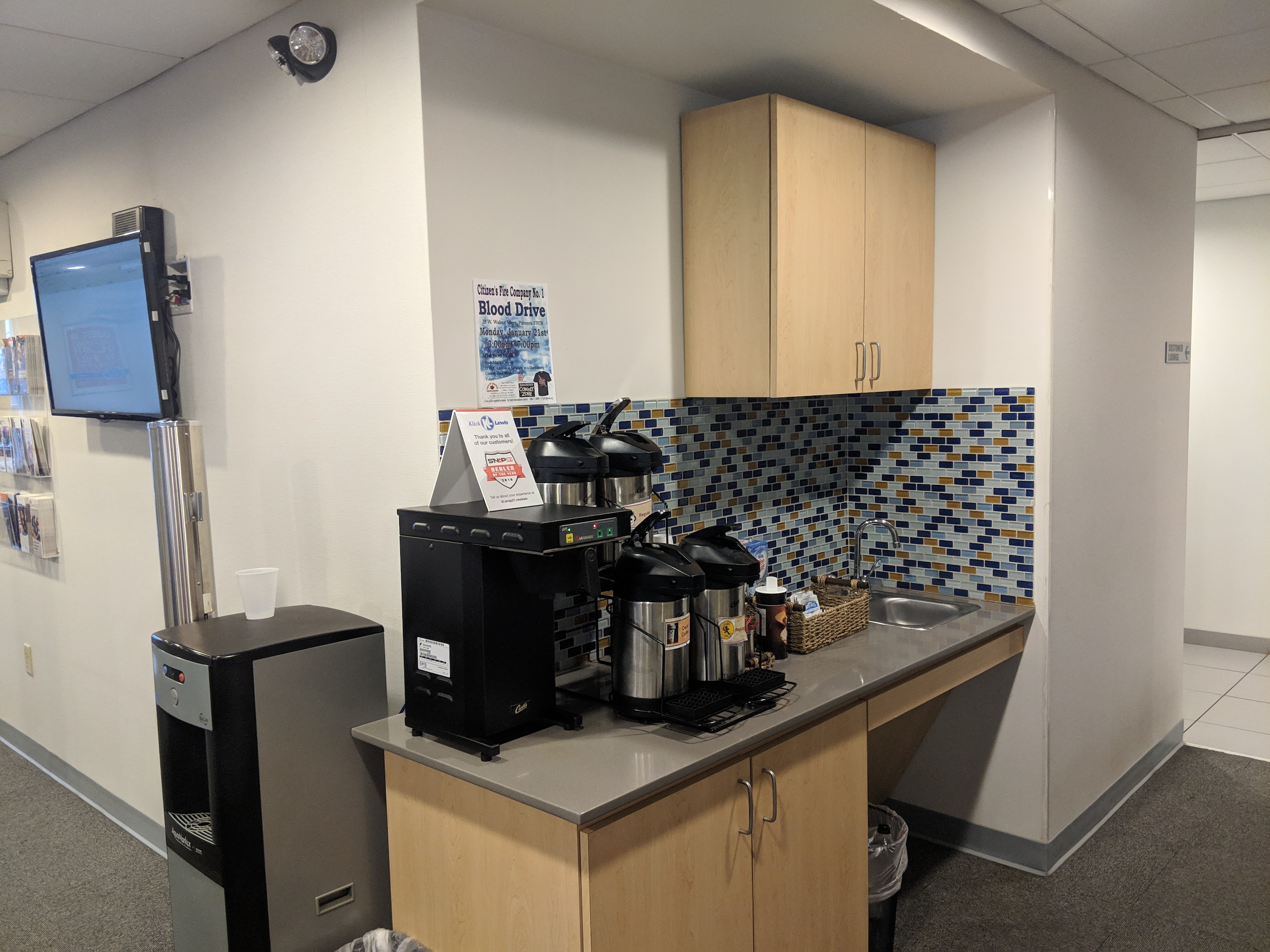 - Comfortable customer lounge Complimentary Coffee, Tea, and Cocoa