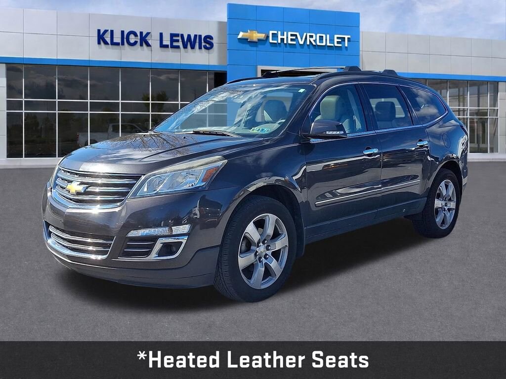 Our dealership is proud to offer this good-looking 2017 Chevrolet Traverse in Tungsten Metallic This vehicle has passed our comprehensive 172 point inspection and comes with the following features; *Heated/Cooled Seats, *Heated Leather Seats, *Leather Seats, *NonSmoker, *Local Trade, *Back-Up Camera, *Power Liftgate, *Bluetooth for Phone, *Navigation, *Android Auto/iPhone Car Play, *Clean AutoCheck Report, *Low Miles!, AWD, 8-Way Power Driver Seat, Auto-Dimming Inside Rear-View Mirror, Bluetooth® For Phone, Body-Color Moldings w/Chrome Bodyside Accents, Bose Premium 10-Speaker Audio System Feature, Color Touch Navigation System, Dual Exhaust w/Bright Tips, Enhanced Driver Information Center, Forward Collision Alert & Lane Departure Warning, Front & Rear Black Bowtie Emblems (LPO), Front Fog Lamps, Frontal & Side-Impact Airbags, Heated Steering Wheel, Heavy-Duty Cooling System, Interior Wood Grain Center Stack & Interior Trim, Leather-Wrapped Steering Wheel, Memory Package, Navigation System, NavTraffic, Power Windows w/Driver Express-Up & Down, Power-Folding Heated Body-Color Outside Mirrors, Preferred Equipment Group 1LZ, Rear Audio System Controls, Rear Park Assist, Rear Power Liftgate, Remote Vehicle Start, Side Blind Zone Alert & Rear Cross Traffic Alert, Trailer Hitch, Trailering Equipment, Tri-Zone Automatic Climate Control, Universal Home Remote, Variable Effort Power Steering, 10 Speakers, 20 x 7.5 Machined Aluminum Wheels, 3.16 Axle Ratio, 3rd row seats: split-bench, 4-Wheel Disc Brakes, 7-Passenger Seating (2-2-3 Seating Configuration), 8-Way Power Passenger Seat Adjuster, ABS brakes, Air Conditioning, Alloy wheels, AM/FM radio: SiriusXM, Auto-dimming door mirrors, Auto-dimming Rear-View mirror, Automatic temperature control, Bodyside moldings, Brake assist, Bumpers: body-color, CD player, Compass, Delay-off headlights, Driver door bin, Driver vanity mirror, Dual front impact airbags, Dual front side impact airbags, Dual SkyScape 2-Panel Power Sunroof, Electronic Stability Control, Emergency communication system, Exterior Parking Camera Rear, Four wheel independent suspension, Front anti-roll bar, Front Bucket Seats, Front Center Armrest w/Storage, Front dual zone A/C, Front fog lights, Front reading lights, Fully automatic headlights, Garage door transmitter, Heated & Cooled Driver & Front Passenger Seats, Heated door mirrors, Heated front seats, Heated steering wheel, Illuminated entry, Leather Shift Knob, Low tire pressure warning, Memory seat, Occupant sensing airbag, Outside temperature display, Overhead airbag, Panic alarm, Passenger door bin, Passenger vanity mirror, Perforated Leather-Appointed Seat Trim, Power door mirrors, Power driver seat, Power Liftgate, Power passenger seat, Power steering, Power windows, Premium audio system: Chevrolet MyLink, Radio data system, Radio: Chevrolet MyLink AM/FM Stereo w/CD & NAV, Rear air conditioning, Rear anti-roll bar, Rear audio controls, Rear reading lights, Rear window defroster, Rear window wiper, Remote keyless entry, Roof rack, Security system, SiriusXM Satellite Radio, Speed control, Speed-sensing steering, Spoiler, Steering wheel mounted audio controls, Tachometer, Telescoping steering wheel, Tilt steering wheel, Traction control, Trip computer, Turn signal indicator mirrors, Variably intermittent wipers, Ventilated front seats, Voltmeter, Moonroof / Sunroof, *Service Records Available, AWD, 8-Way Power Driver Seat, Auto-Dimming Inside Rear-View Mirror, Bluetooth® For Phone, Body-Color Moldings w/Chrome Bodyside Accents, Bose Premium 10-Speaker Audio System Feature, Color Touch Navigation System, Dual Exhaust w/Bright Tips, Enhanced Driver Information Center, Forward Collision Alert & Lane Departure Warning, Front & Rear Black Bowtie Emblems (LPO), Front Fog Lamps, Frontal & Side-Impact Airbags, Heated Steering Wheel, Heavy-Duty Cooling System, Interior Wood Grain Center Stack & Interior Trim, Leather-Wrapped Steering Wheel, Memory Package, Navigation Syste