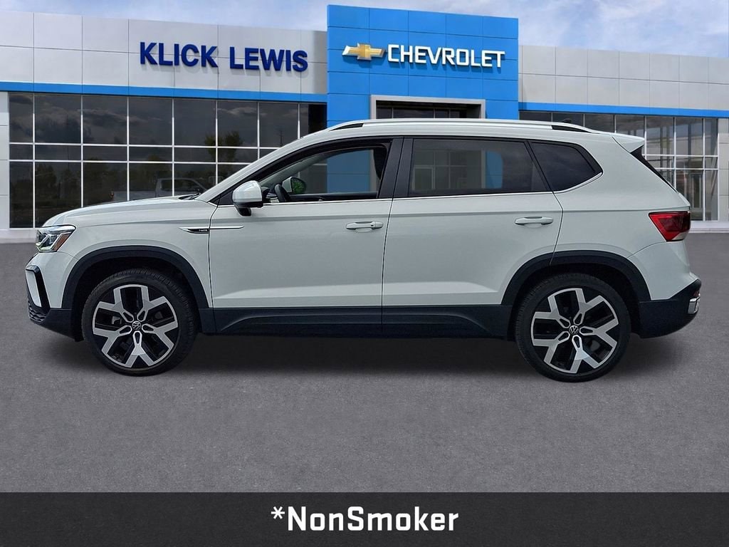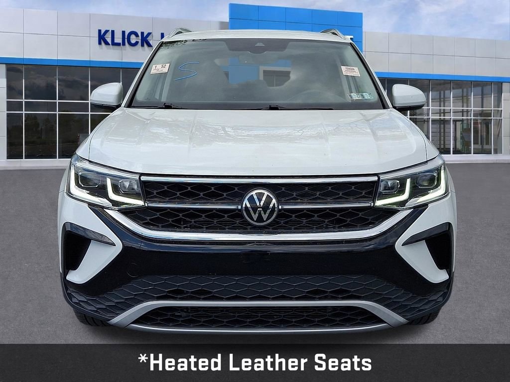 Our dealership is proud to offer this charming 2022 Volkswagen Taos in White This vehicle has passed our comprehensive 172 point inspection and comes with the following features; *Heated Leather Seats, *Leather Seats, *NonSmoker, *Back-Up Camera, *Bluetooth for Phone, *Android Auto/iPhone Car Play, *Clean AutoCheck Report, *Low Miles!, Navigation System, Navigation system: VW Car-Net Guide & Inform, 4-Wheel Disc Brakes, 5.20 Axle Ratio, 9 Speakers, ABS brakes, Active Blind Spot Monitor, Air Conditioning, Alloy wheels, AM/FM radio: SiriusXM with 360L, Auto High-beam Headlights, Auto-dimming Rear-View mirror, Automatic temperature control, Brake assist, Bumpers: body-color, Compass, Delay-off headlights, Driver door bin, Driver vanity mirror, Dual front impact airbags, Dual front side impact airbags, Electronic Stability Control, Emergency communication system: Car-Net, Exterior Parking Camera Rear, Four wheel independent suspension, Front anti-roll bar, Front Bucket Seats, Front Center Armrest, Front dual zone A/C, Front reading lights, Front Strut Rear Multi-Link Suspension, Fully automatic headlights, Heated & Ventilated Front Comfort Sport Seats, Heated door mirrors, Heated front seats, Heated steering wheel, Illuminated entry, Leather Shift Knob, Low tire pressure warning, Occupant sensing airbag, Outside temperature display, Overhead airbag, Overhead console, Panic alarm, Passenger door bin, Passenger vanity mirror, Perforated Vienna Leather Seating Surfaces, Power door mirrors, Power driver seat, Power steering, Power windows, Radio data system, Radio: MIB3 Discover Media AM/FM/HD, Rain sensing wipers, Rear anti-roll bar, Rear Parking Sensors, Rear seat center armrest, Rear window defroster, Rear window wiper, Remote keyless entry, Roof rack, Security system, Speed control, Speed-sensing steering, Split folding rear seat, Spoiler, Steering wheel mounted audio controls, Tachometer, Telescoping steering wheel, Tilt steering wheel, Traction control, Trip computer, Variably intermittent wipers, Ventilated front seats, Wheels: 19 2-Tone Machined Alloy, *Service Records Available, Navigation System, Navigation system: VW Car-Net Guide & Inform.CARFAX One-Owner. Clean CARFAX.Recent Arrival! Odometer is 716 miles below market average! 25/32 City/Highway MPG